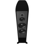 A többrétegű, ívelt kabinet és a masszív fekete alumínium előlap nemcsak elegáns megjelenést kölcsönöz, hanem kiváló akusztikai stabilitást is biztosít.